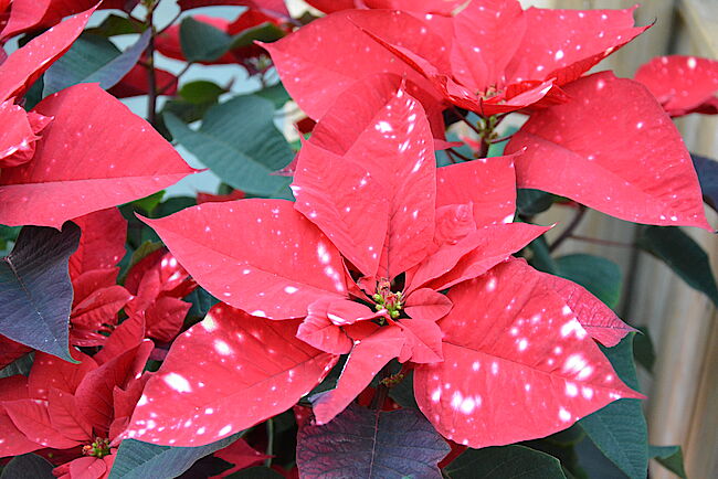 Topfpflanzen: - Euphorbia pulcherrima midi werden an Uhr 6 nach Grünpflanzen auf Stapelwagen versteigert.
